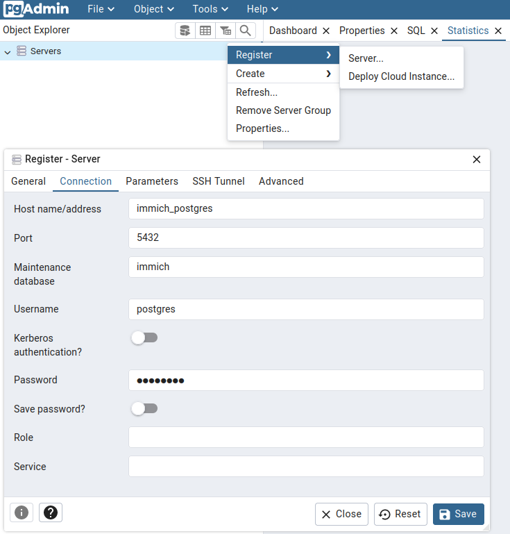 A short guide on connecting pgAdmin to Immich.