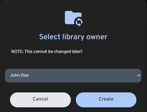 In the dialog, select which user should own the new library